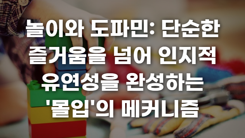 우리가 보기엔 그저 단순한 흙장난, 블록 쌓기 같지만 아이들에게는 세상을 이해하기 위한 치열한 두뇌 활동입니다. 그 과정에서 분비되는 도파민은 아이가 더 높은 단계로 올라가도록 이끄는 친절한 안내자이죠. 부모님의 역할은 그 과정을 통제하는 것이 아니라, 아이가 마음껏 탐험할 수 있는 안전한 울타리가 되어주는 것일지도 모릅니다. 오늘 아이의 놀이 속에서 그 반짝이는 몰입의 순간을 발견해 보시는 건 어떨까요?