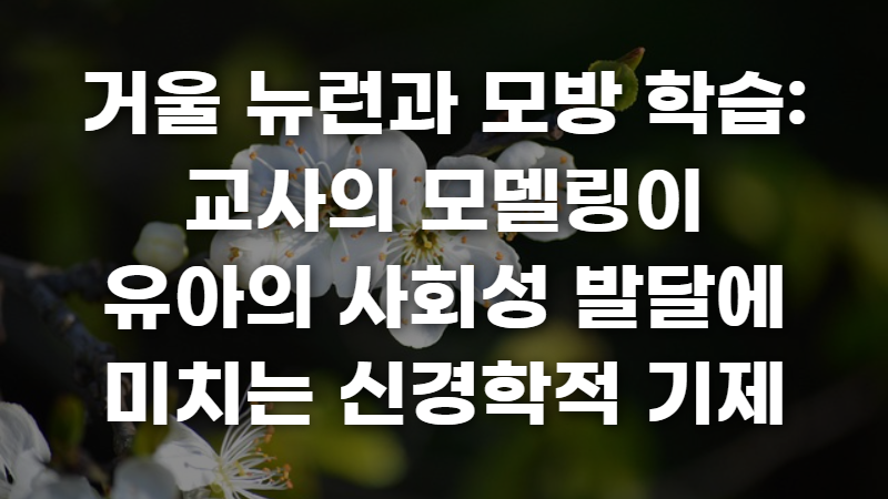 거울 뉴런과 모방 학습: 교사의 모델링이 유아의 사회성 발달에 미치는 신경학적 기제